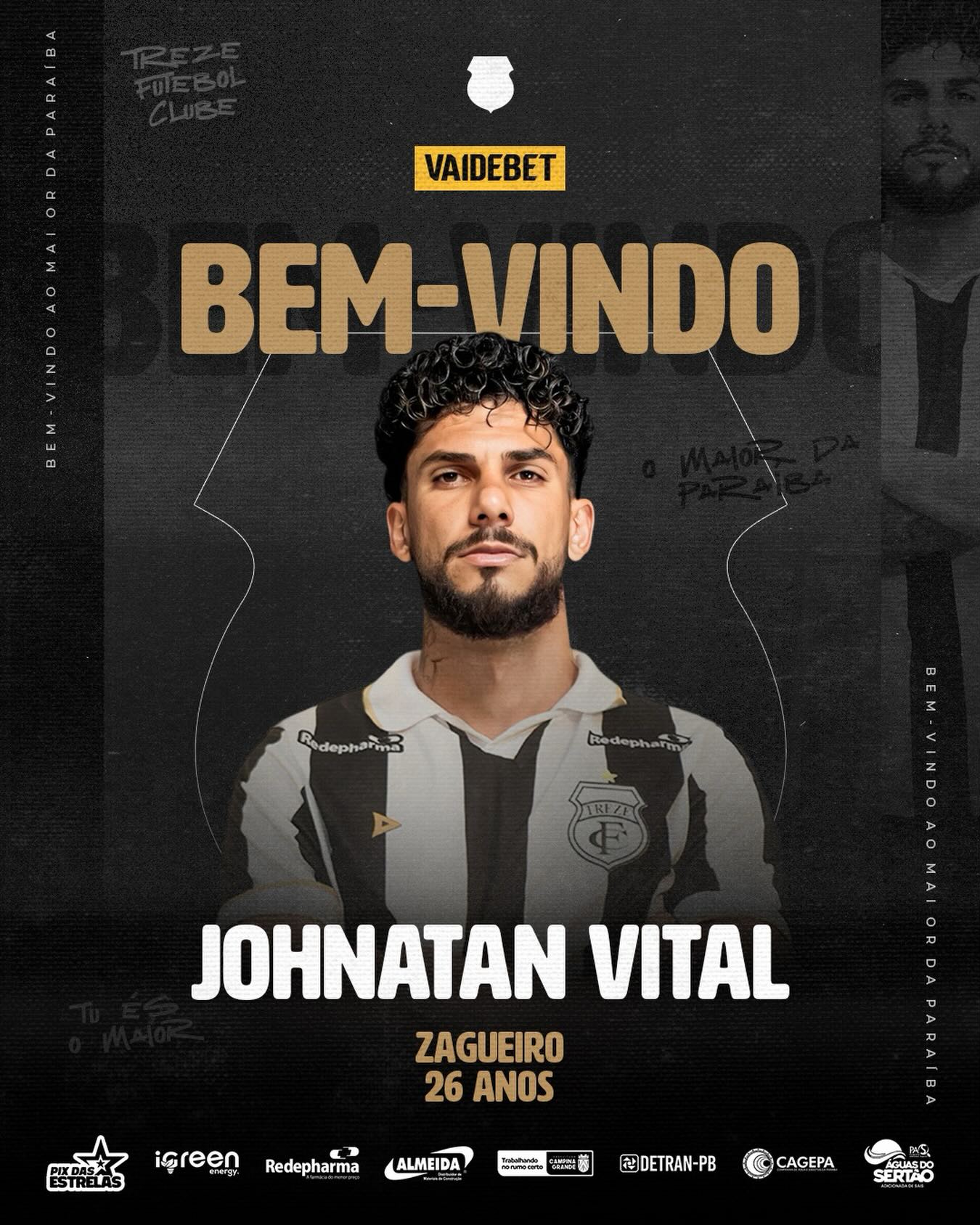 Natural de Campina Grande, zagueiro Vital é anunciado como mais novo reforço do Treze para a Série D do Brasileiro