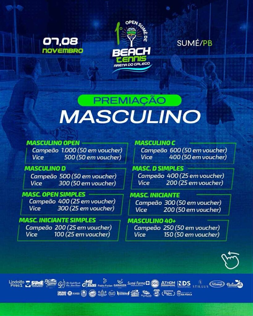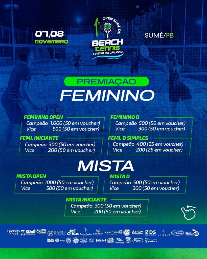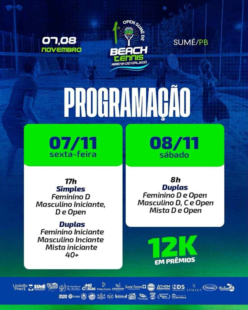 Confira as categorias esportivas (modalidades) e a programação completa do 1º Open Sumé de Beach Tennis – Arena do Galego: