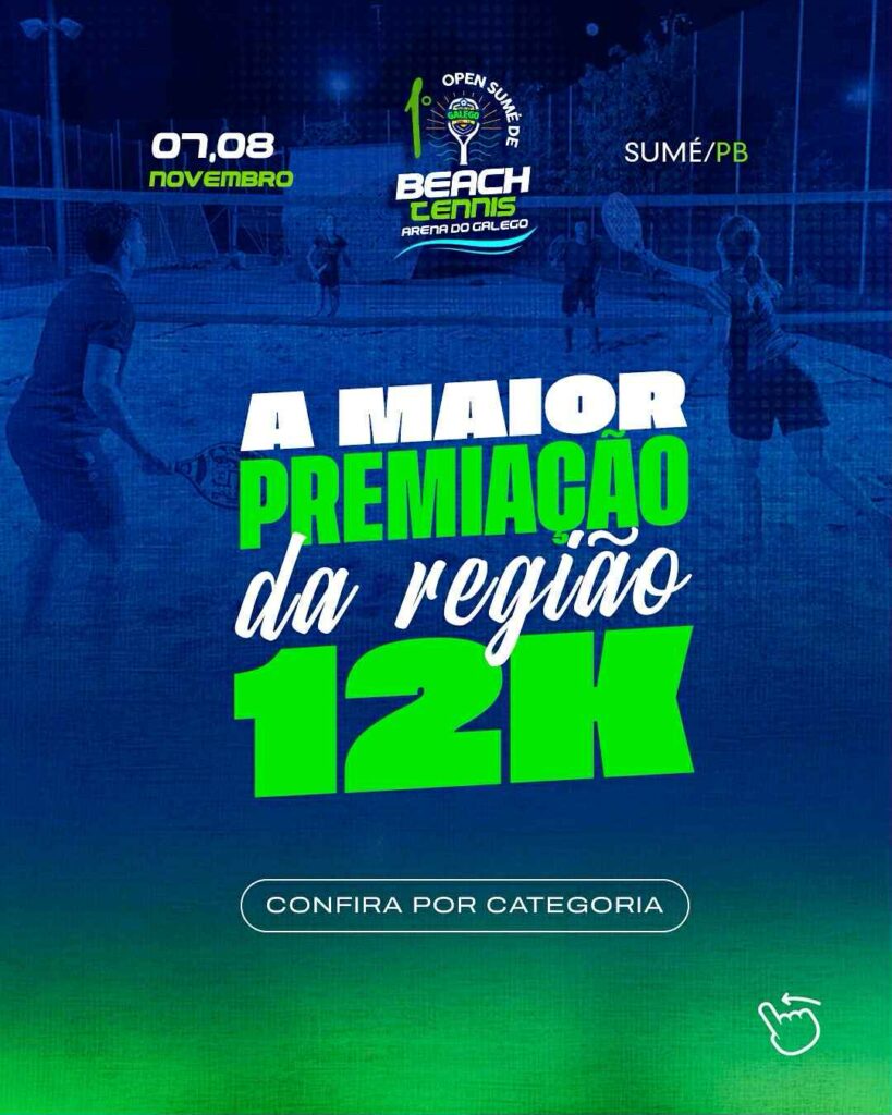 Nesta sexta-feira e sábado, dias 7 e 8 de novembro, a Arena do Galego, em Sumé, será palco do 1º Open Sumé de Beach Tennis, um dos maiores eventos da modalidade já realizados no Cariri paraibano.