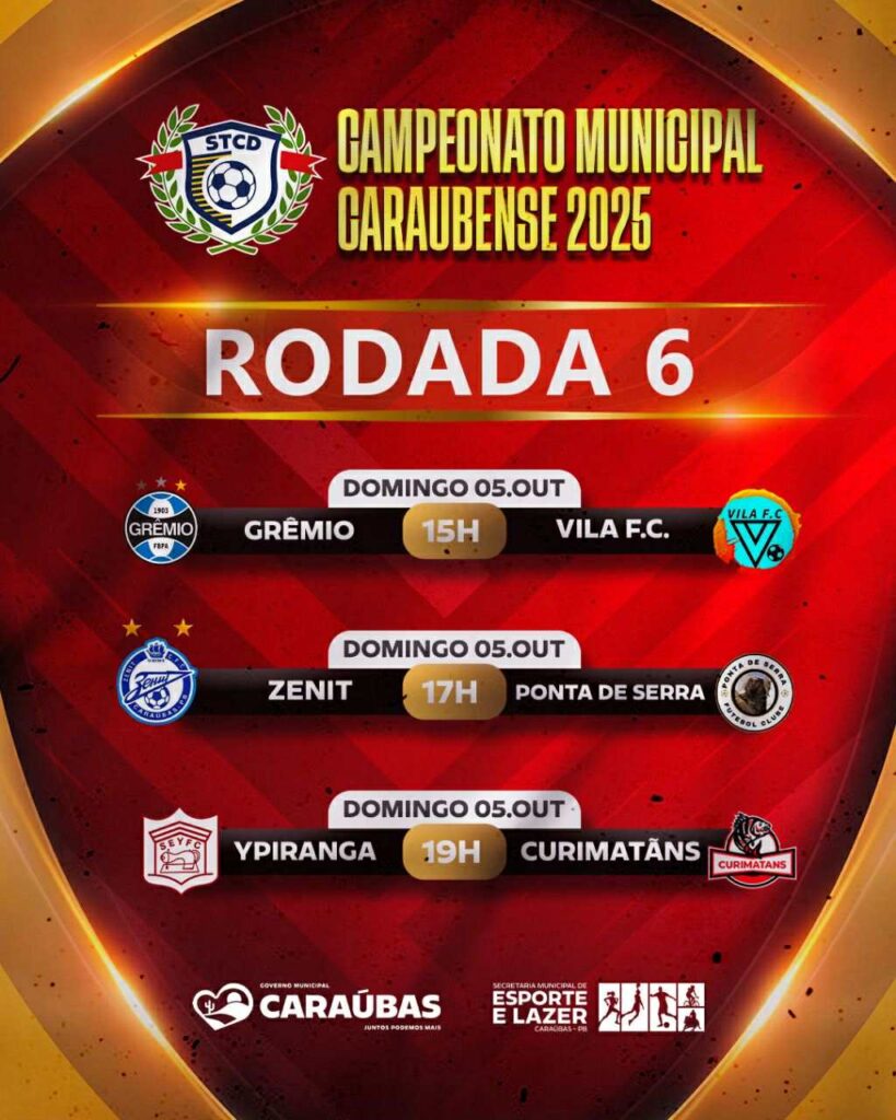 Confira os jogos da 6ª rodada do Campeonato Caraubense de Futebol 2025: