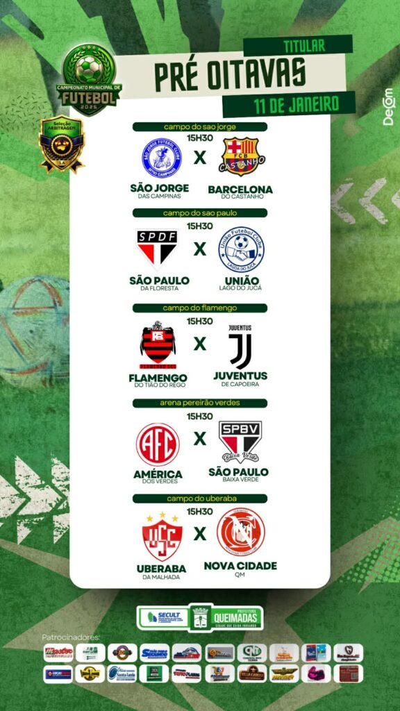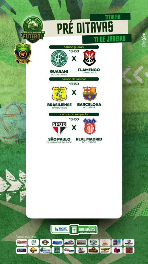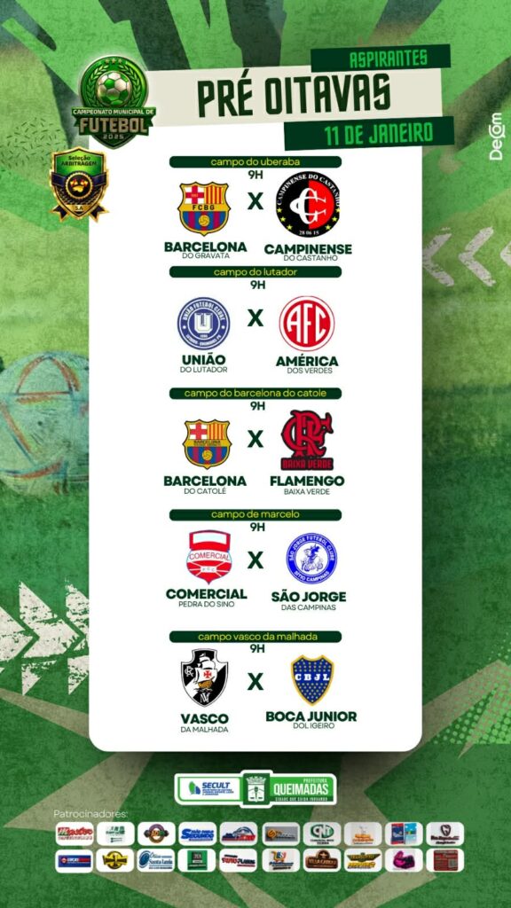 Após o encerramento da primeira fase, marcada por partidas bastante disputadas e grande presença do público ao longo dos últimos meses, o Campeonato Municipal de Futebol de Queimadas terá continuidade agora em 2026, com a realização da segunda fase da competição.
