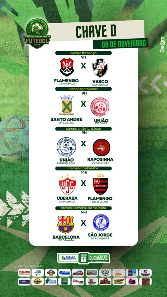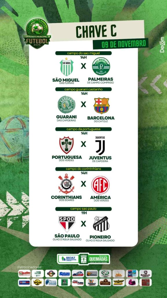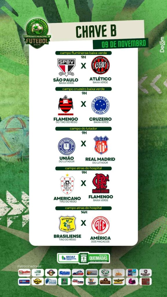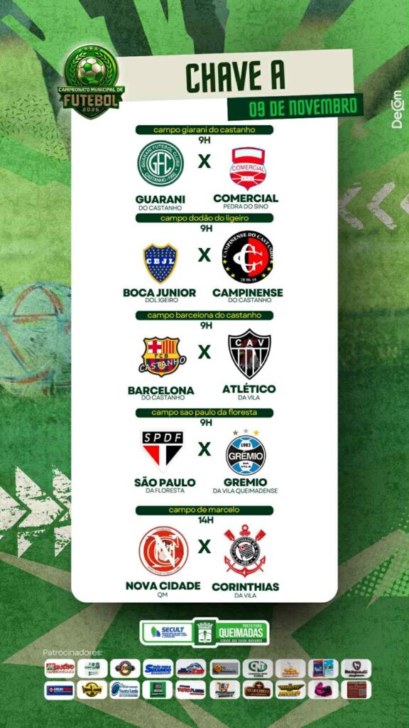 Após uma semana de paralisação devido ao feriado do Dia de Finados, o Campeonato Municipal de Futebol de Queimadas retorna neste domingo (09) com mais uma rodada que promete muita emoção, futebol e integração esportiva em todo o município de Queimadas, no interior da Paraíba.