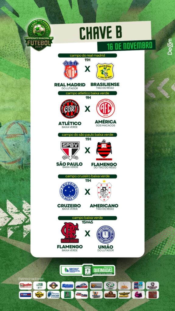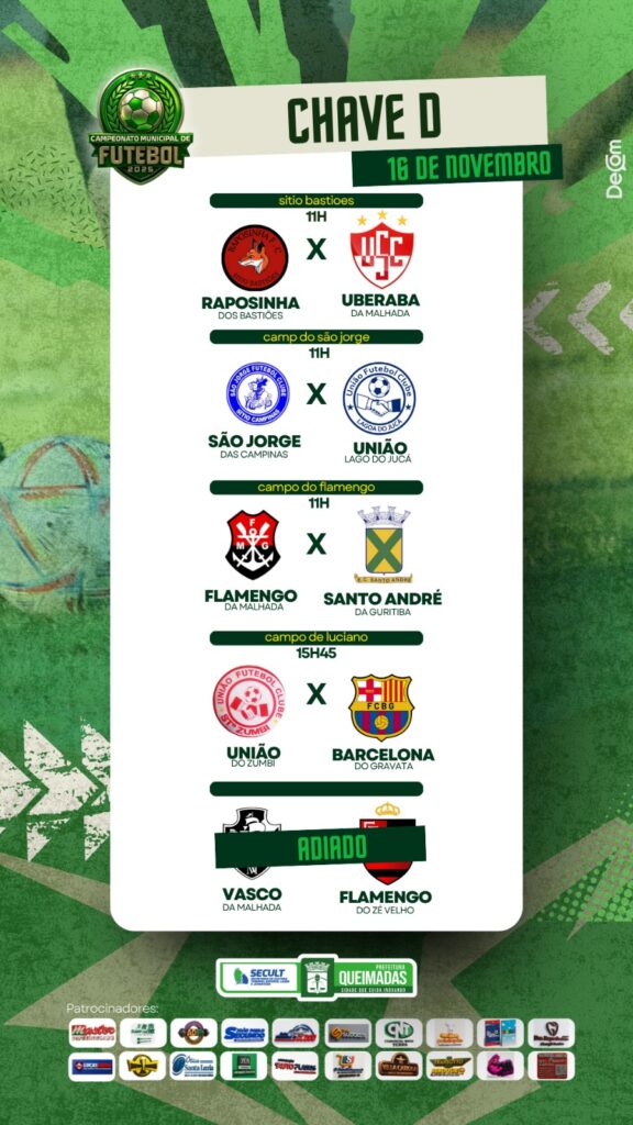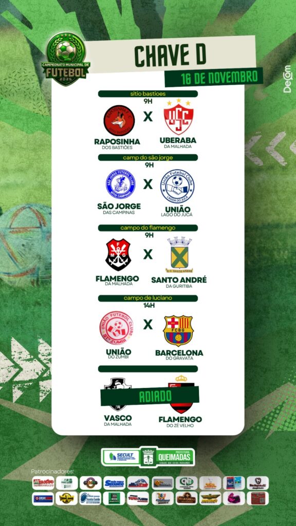 O Campeonato Municipal de Futebol de Queimadas continua mobilizando atletas, torcedores e amantes do esporte em todo o município. Neste domingo, dia 16, a bola volta a rolar com os jogos válidos pela sexta rodada da competição, prometendo um Domingão cheio de emoção nos diversos campos de futebol do município.