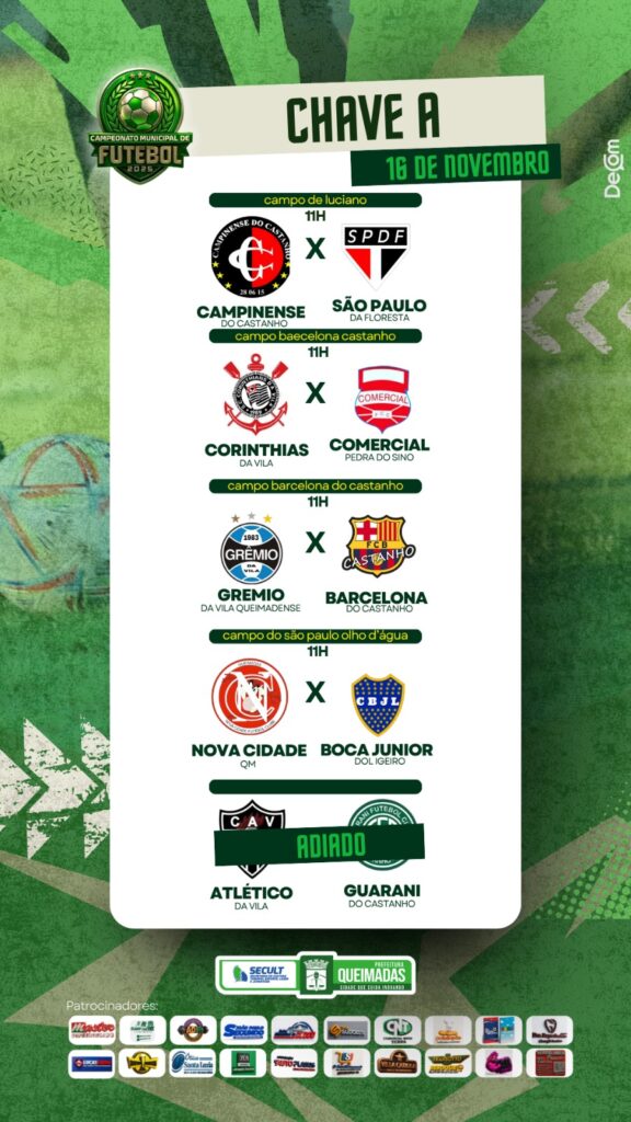 Ao todo, 34 partidas serão disputadas nas categorias Aspirantes e Titular, mantendo o ritmo intenso que tem marcado esta edição. A competição vem sendo considerada um grande sucesso, fortalecendo o lazer, o esporte e a convivência comunitária entre a juventude e as famílias queimadenses.