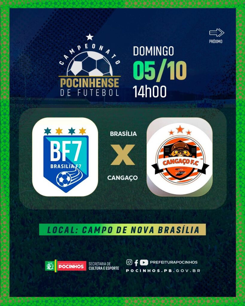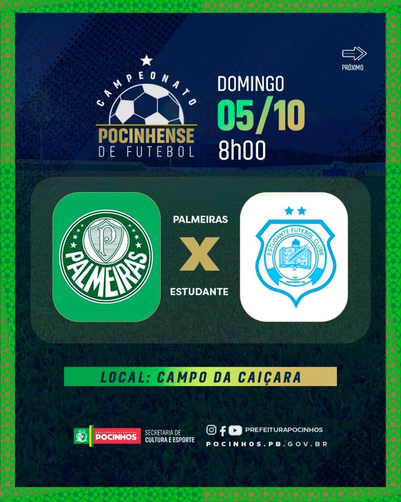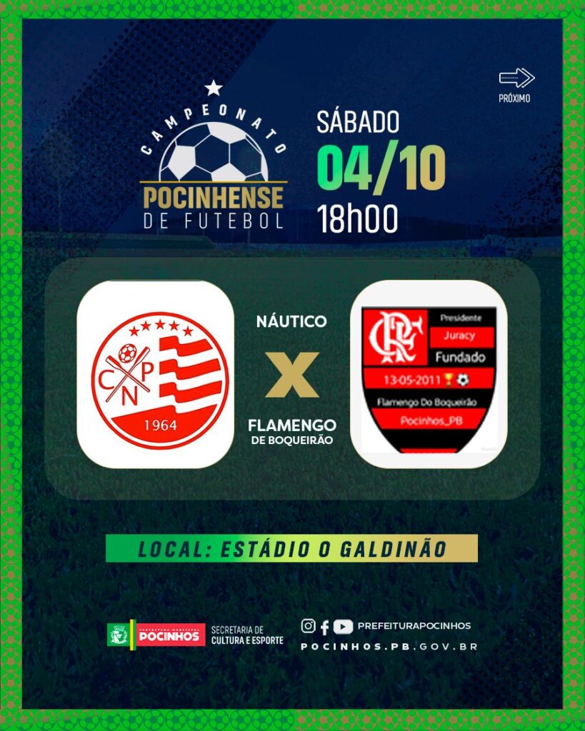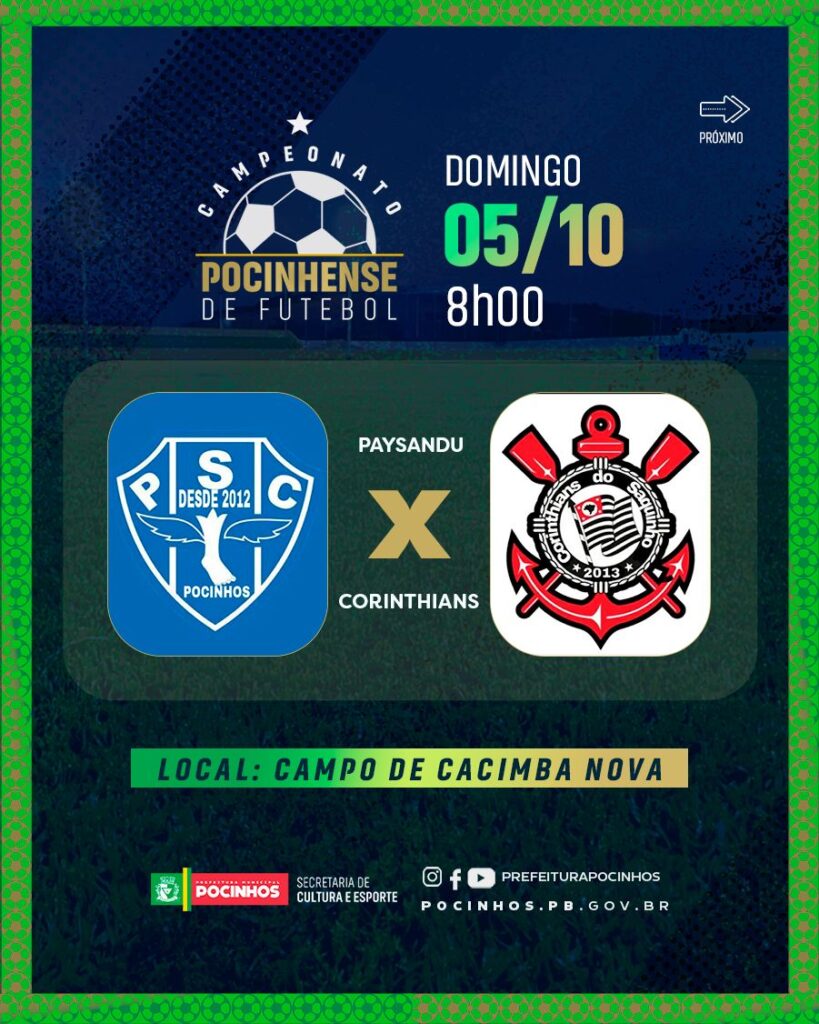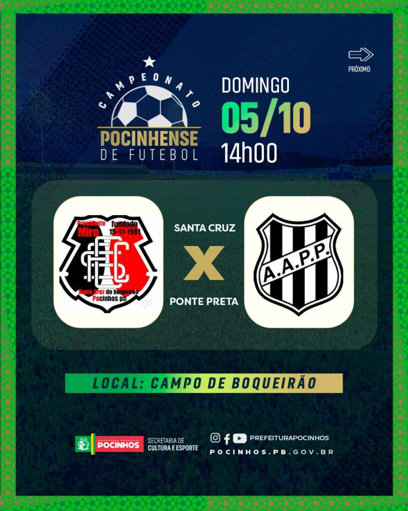O Campeonato Pocinhense de Futebol 2025 é uma realização total da Prefeitura Municipal de Pocinhos na gestão da prefeita Eliane Galdino e do vice-prefeito Sóstenes Murilo, e conta com todo suporte da secretaria de cultura e esportes na pessoa do secretário Tiago Monteiro.