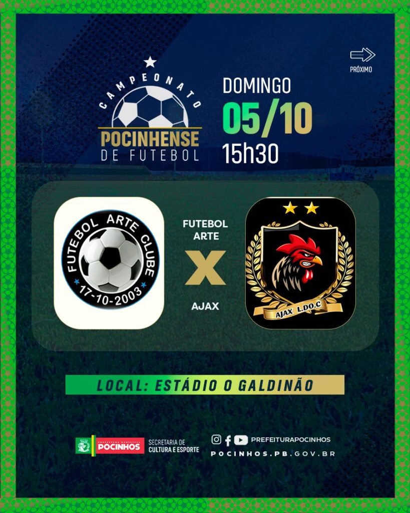 Após o grande sucesso do lançamento oficial do Campeonato Pocinhense de Futebol Amador edição 2025 realizado na última quarta-feira(01), neste próximo domingo, dia 05, a bola irá rolar literalmente em todo o município de Pocinhos com os jogos válidos pela rodada de abertura da competição.