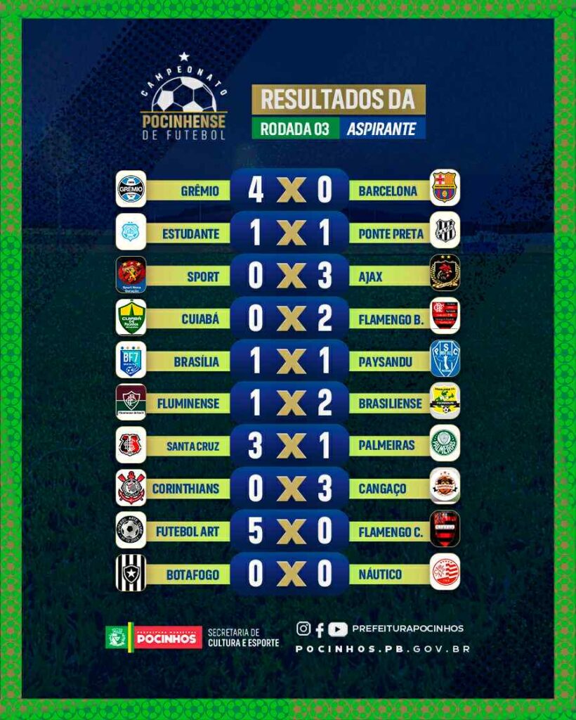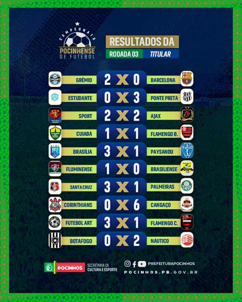 Confira os resultados da terceira rodada do Campeonato Pocinhense de Futebol 2025: