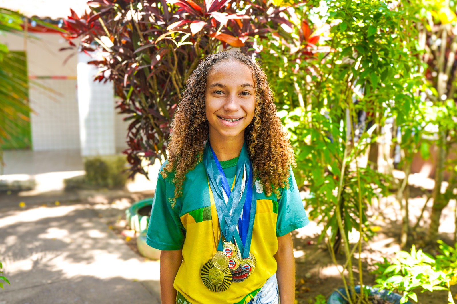 A atleta Kamilla Yasmim Santos Araújo, de 13 anos, estudante do 7º ano da Escola Municipal Lions Prata, conquistou o primeiro lugar na categoria bronze