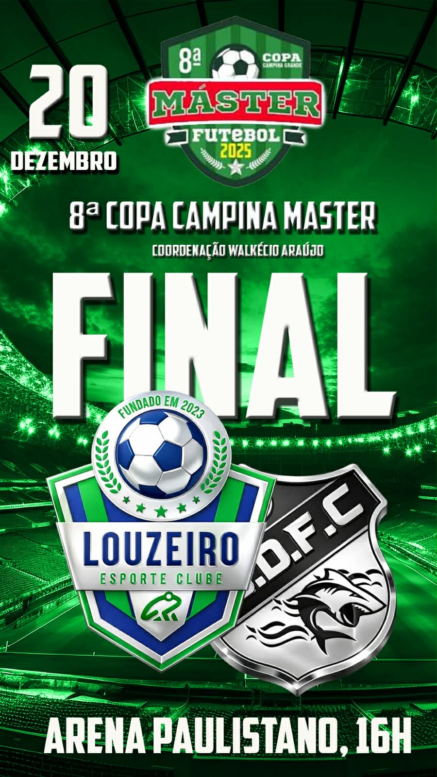 Neste sábado (20), será conhecida a equipe campeã da 8ª Copa Campina de Futebol Master, competição que tem a coordenação de Walkécio Araújo. A grande