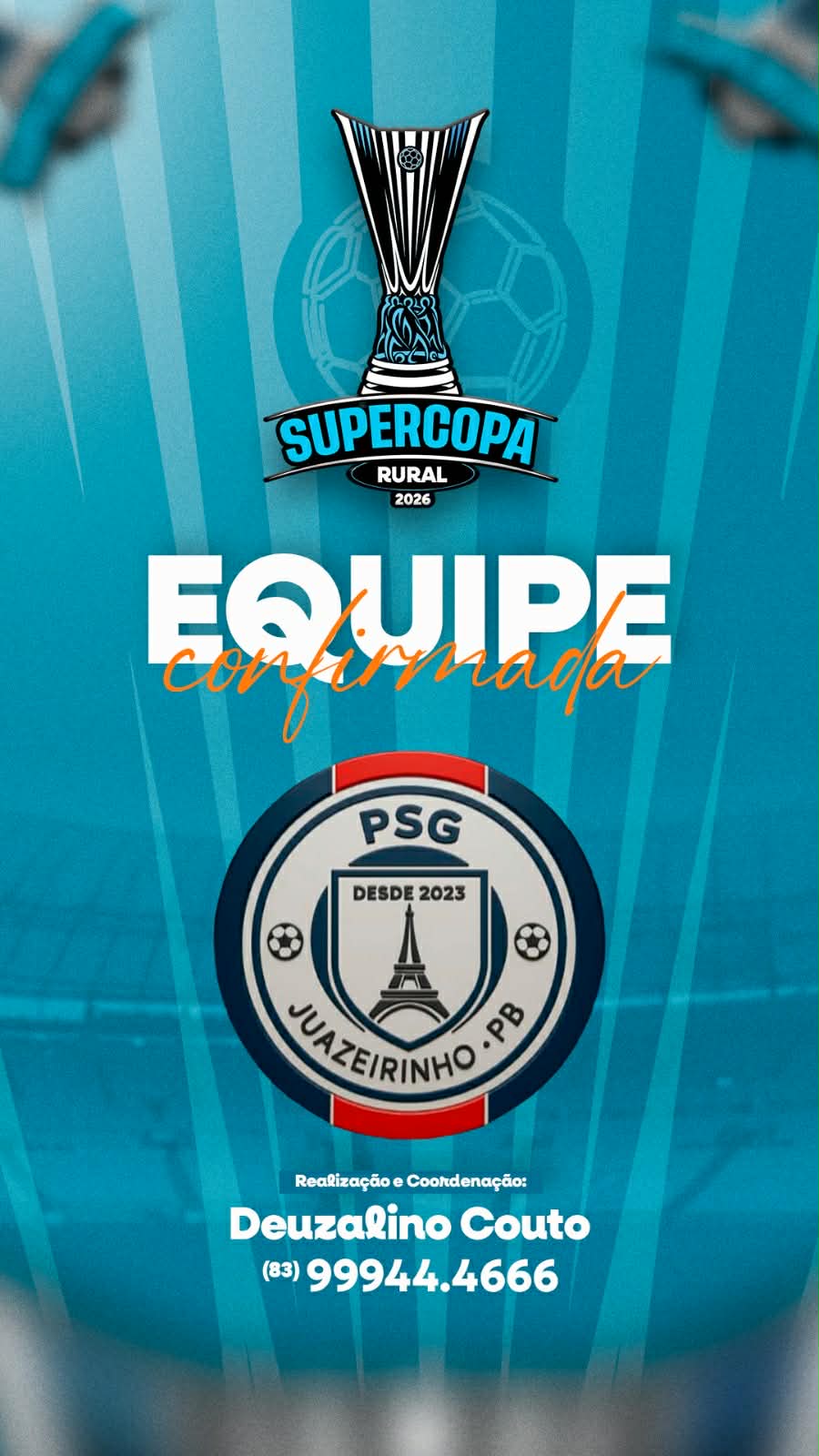 Fundado em 2023, o PSG de Juazeirinho confirmou sua participação na edição 2026 da Supercopa Rural de Futebol Amador. A equipe representará oficialmente o município