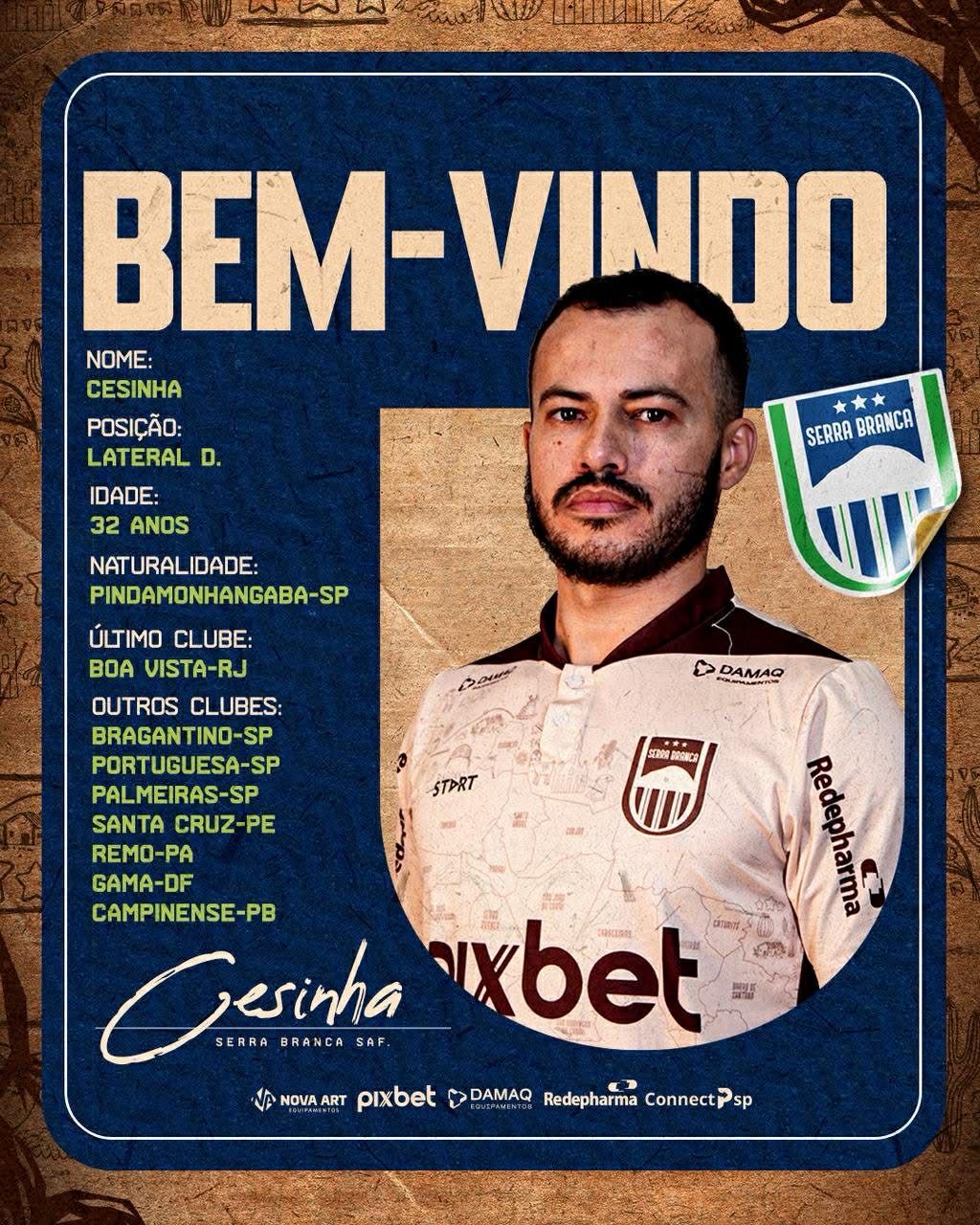 A equipe do Serra Branca SAF segue se reforçando para a disputa da Série D do Campeonato Brasileiro e nesta quinta-feira(02), a equipe anunciou mais