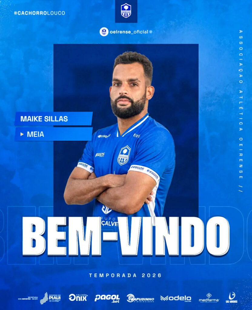 O atleta foi anunciado nesta quinta-feira (04) como o mais novo reforço da Associação Atlética Oirense do Piaui. Mayke Silas chega ao Cachorro Louco, como é conhecido pela sua torcida, com a responsabilidade de contribuir com a equipe que irá em busca do título do Campeonato Piauiense, trazendo sua experiência e talento para o meio-campo da equipe.