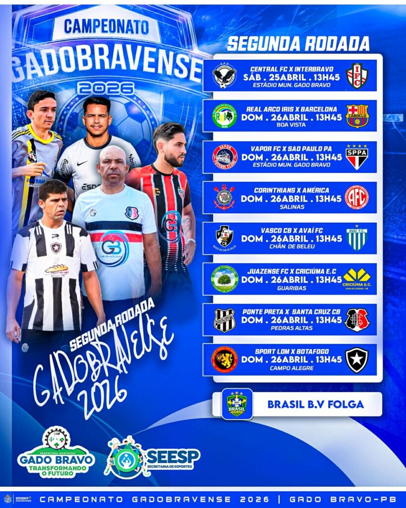 Após uma rodada de abertura bastante movimentada, o Campeonato Gadobravense de Futebol Amador terá sequência neste final de semana com os confrontos válidos pela segunda rodada da competição. A expectativa é de mais um grande público e jogos disputados no município de Gado Bravo, no interior da Paraíba.