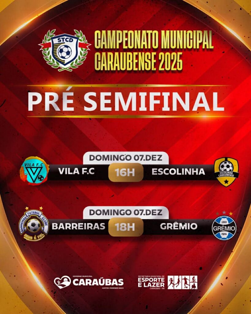 Após uma primeira fase marcada por jogos eletrizantes e muito equilíbrio, o Campeonato Caraubense de Futebol Amador entra agora na fase de mata-mata. Neste domingo, dia 07, será realizada a etapa de pré-semifinal da competição, quando serão definidos os últimos classificados para as semifinais.
