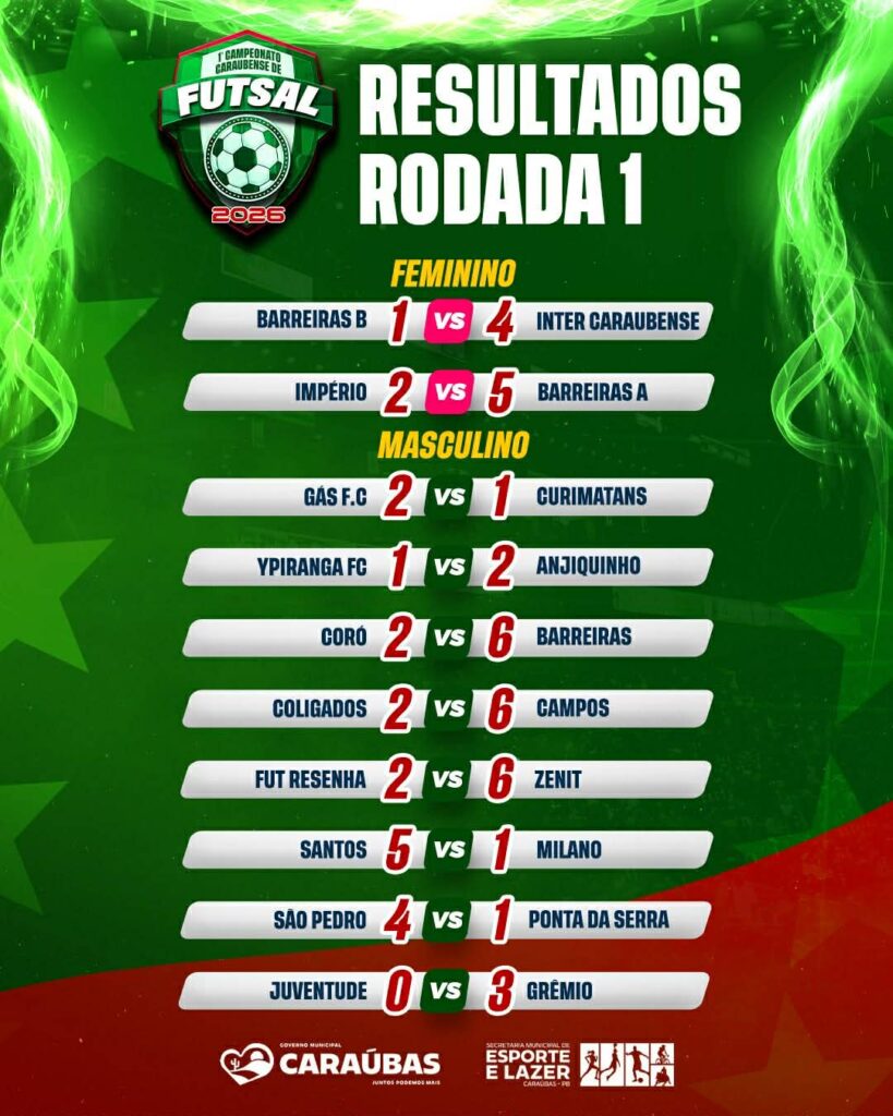 A edição 2026 do Campeonato Caraubense de Futsal já começou com muitos gols, equilíbrio entre as equipes e grande entusiasmo por parte dos atletas e torcedores. Outro destaque da competição é a proposta de descentralização dos jogos, que serão realizados tanto na zona urbana quanto na zona rural do município, promovendo integração, incentivo ao esporte e opções de lazer para diversas comunidades.