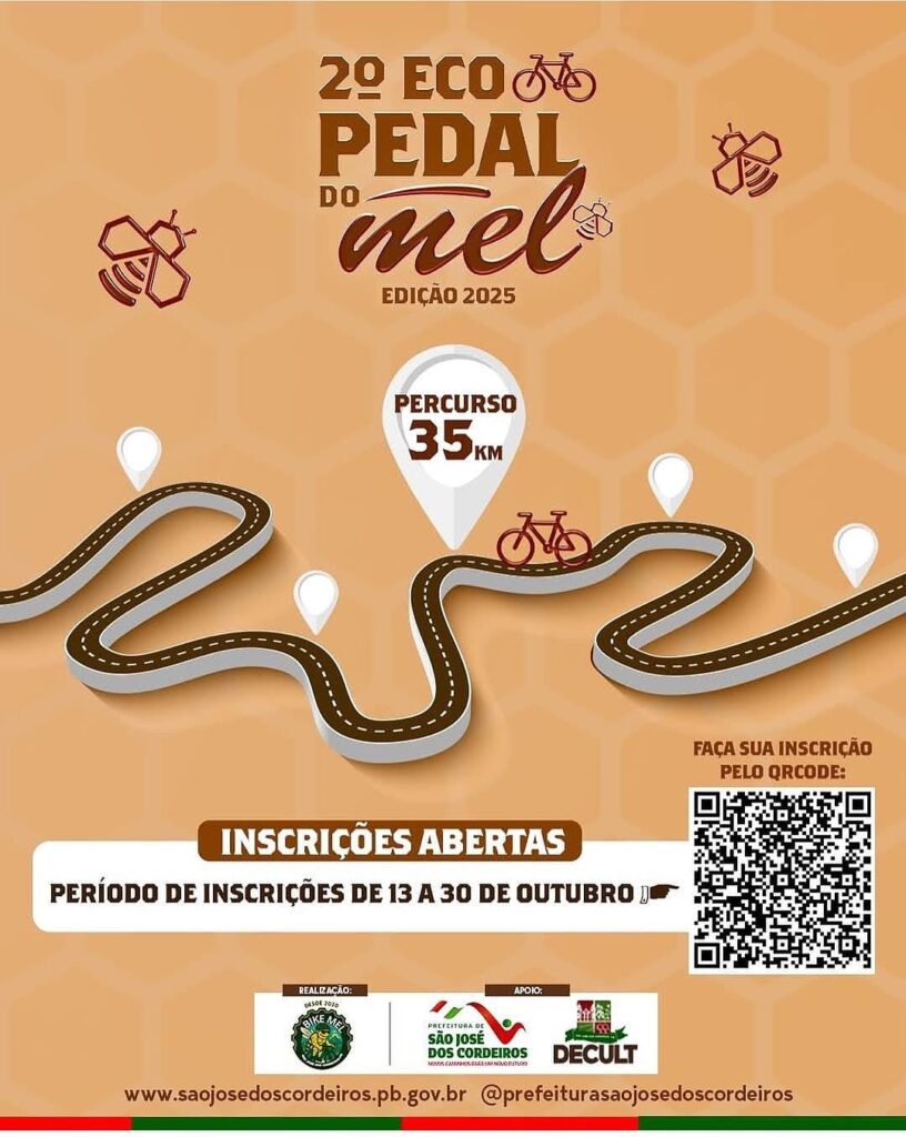 As vagas são limitadas a 200 participantes, e o valor da inscrição é de R$ 100,00. O 2º Ecopedal do Mel será realizado no dia 21 de dezembro, reunindo ciclistas de toda a região para um grande encontro de esporte, natureza e confraternização na cidade de São José dos Cordeiros.