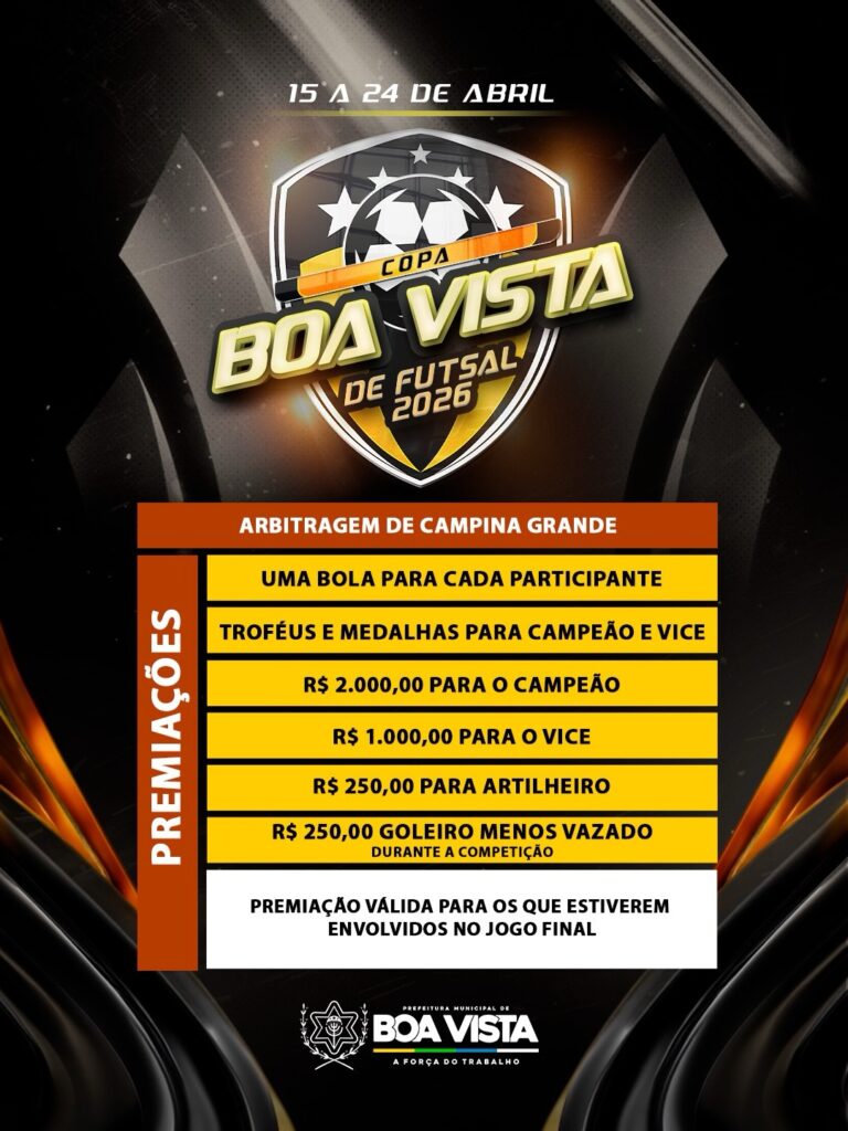 A cidade de Boa Vista se prepara para viver dias de intensa movimentação esportiva com a realização da 1ª Copa Boa Vista de Futsal Amador.