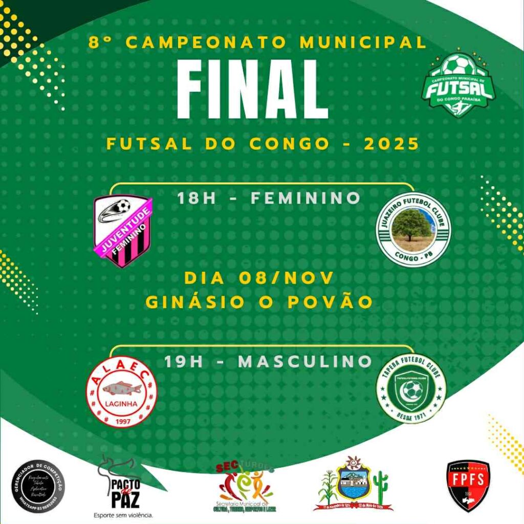 Neste último sábado, foram definidos os grandes finalistas da oitava edição do Campeonato Municipal de Futsal do município do Congo. As partidas semifinais da categoria masculina agitaram o público presente no Ginásio “O Povão”, reunindo desportistas e torcedores em uma noite de muita emoção e competitividade.