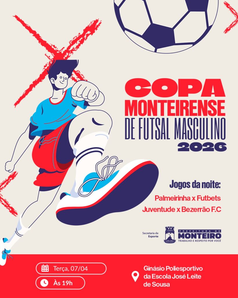 Após grande expectativa por parte dos desportistas de Monteiro, terá início nesta terça-feira, dia 07, a edição 2026 da Copa Monteirense de Futsal Masculino.