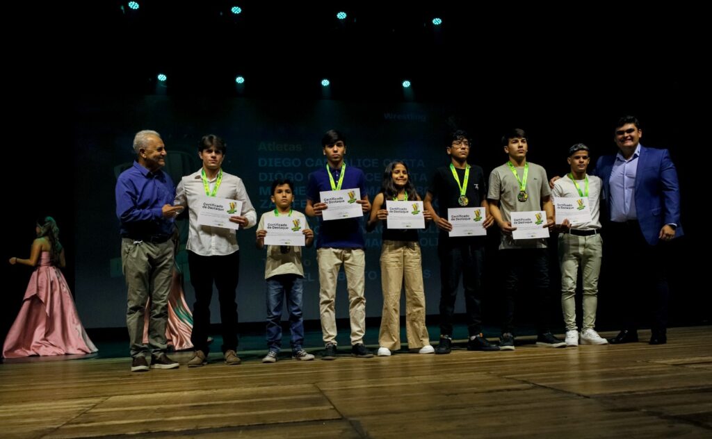 A Secretaria de Esporte, Juventude e Lazer (Sejel), da Prefeitura de Campina Grande, entregou em noite de celebração e comemoração nesta terça-feira, 23, no Teatro Municipal Severino Cabral, o prêmio de reconhecimento aos atletas campinenses denominado de “Destaque Sejel 2025”, a mais de 200 atletas, técnicos e personalidades esportivas que neste ano competiram e se destacaram em diversas modalidades em níveis Regional, Nacional e Internacional. Todos os que receberam homenagens foram apoiados pela Sejel Campina Grande. A premiação contou com apresentações musicais e a Ginástica Rítmica, comandada pela professora Mikaelli Nunes.