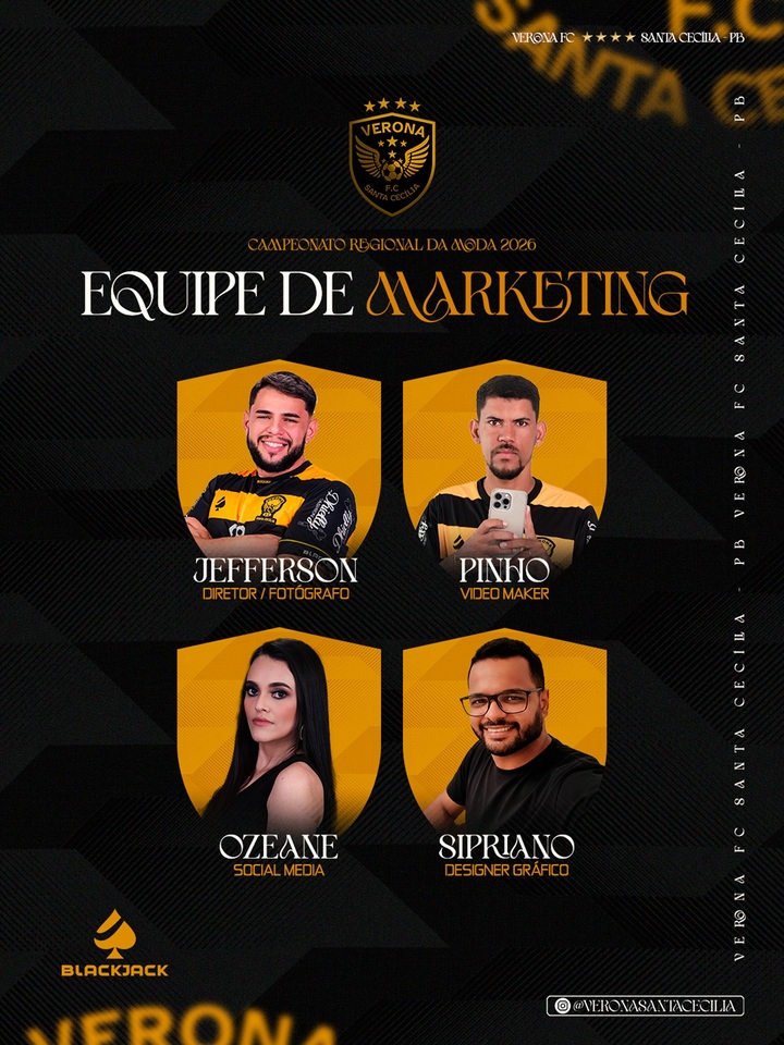 Na função de videomaker, o Verona contará com o influencer esportivo Pinho da Várzea, bastante conhecido na região pela cobertura e divulgação do futebol amador. Já o setor de social media ficará sob responsabilidade da jornalista caririzeira Ozeane, que chega para fortalecer a comunicação digital do clube. Completa a equipe o designer gráfico Sipriano Agripino, que será responsável pela identidade visual e artes da equipe durante a competição.