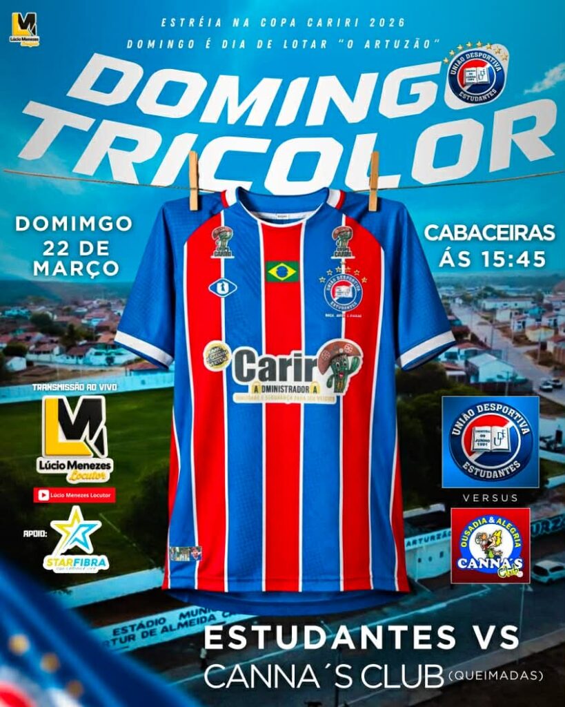 Após anos longe da disputa, o Estudantes de Cabaceiras está de volta à Copa Integração de Futebol do Cariri e fará sua estreia neste domingo (22). A equipe entra em campo no Estádio Municipal Artuzão, em Cabaceiras, onde enfrentará o Canna’s Club, da cidade de Queimadas. A partida está marcada para as 15h45.