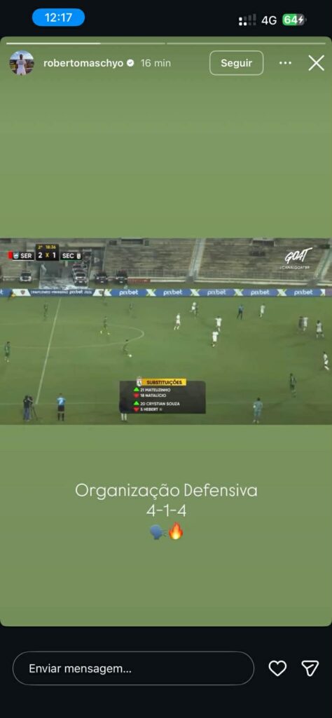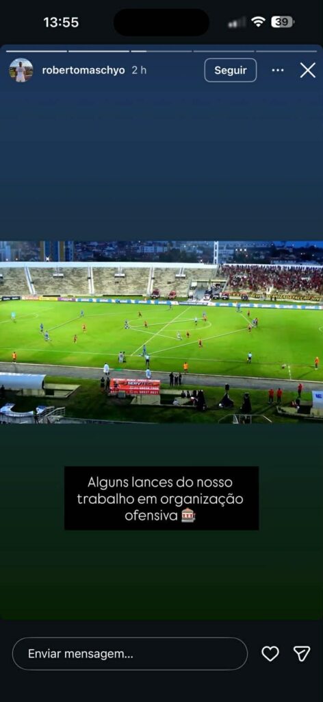 Desde sua saída do comando do Serra Branca SAF, o técnico Roberto Maschio voltou a utilizar as redes sociais para divulgar conteúdos que, segundo apuração, fazem parte do material interno de trabalho da equipe. A primeira situação ocorreu às vésperas do confronto contra o Porto Sport Club, válido pela Copa do Brasil.