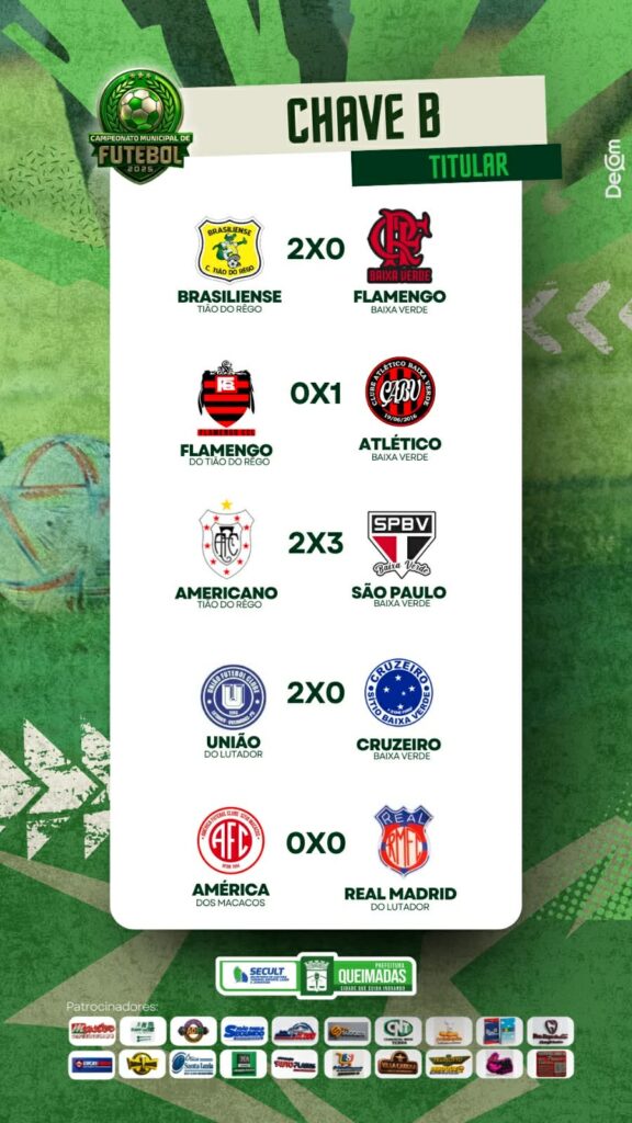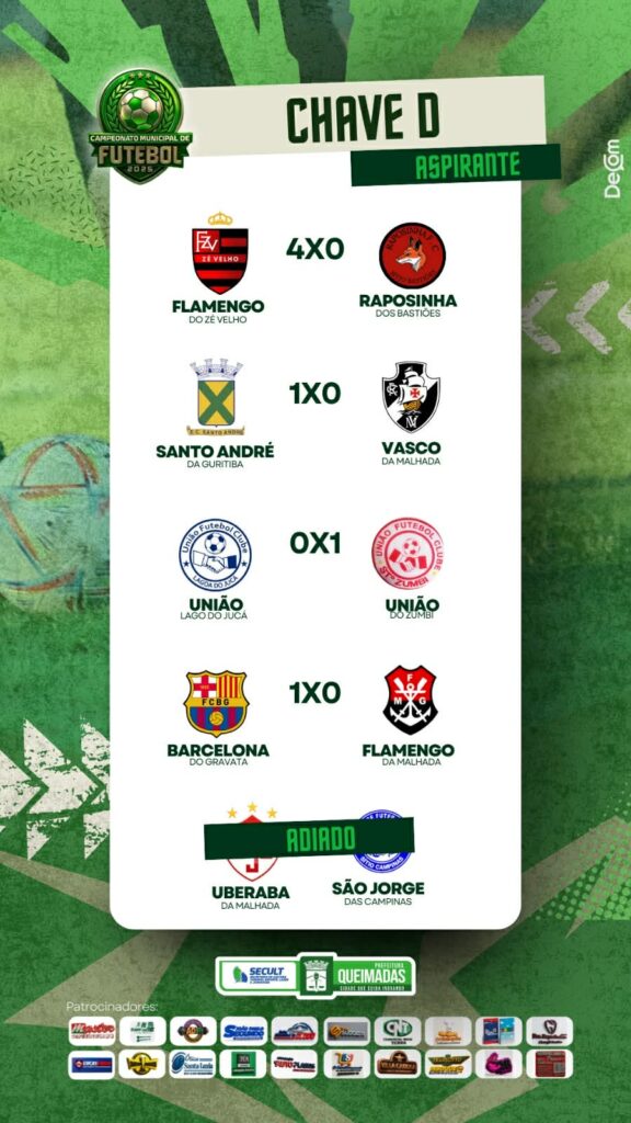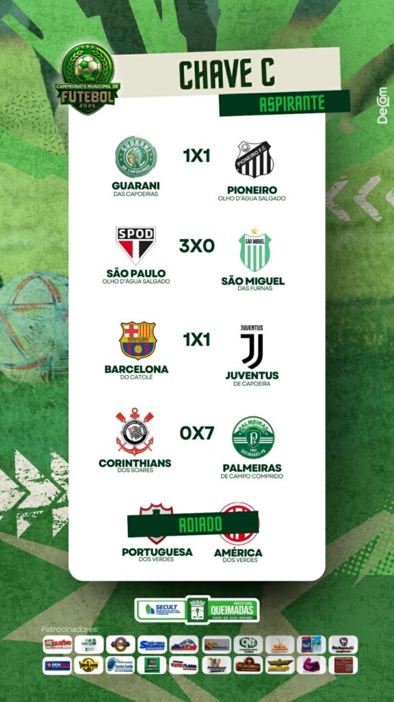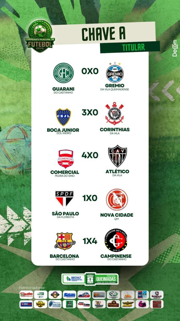 Resultados da 7ª rodada do Campeonato Municipal de Futebol de Queimadas: