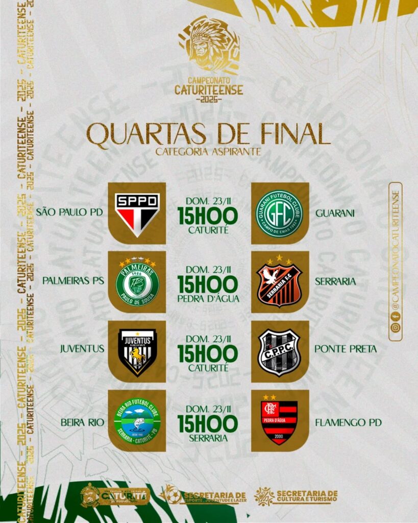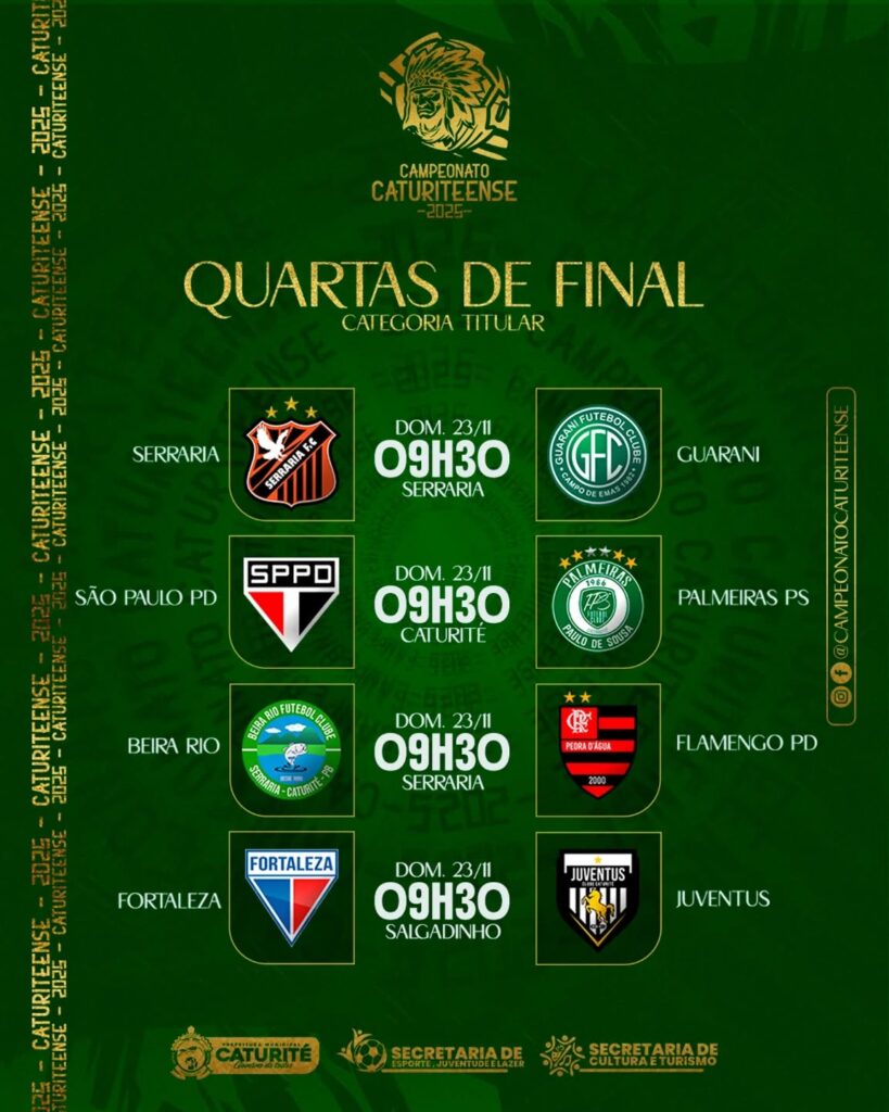 Confira os confrontos das quartas de final do Campeonato Municipal de Futebol Amador de Caturité 2025: