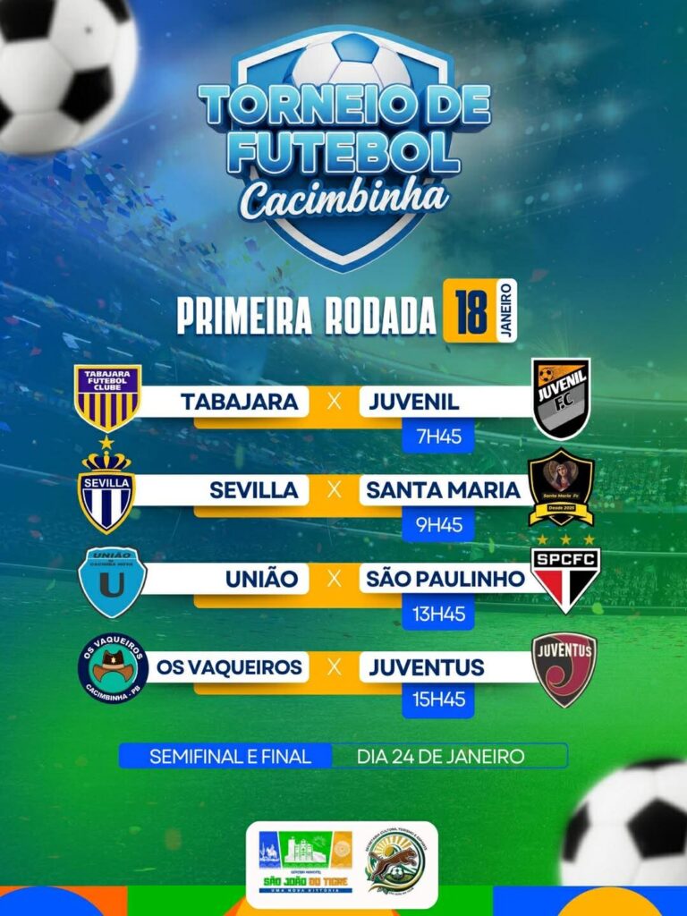 Participam do Torneio de Futebol da Cacimbinha as equipes do Tabajara, Juvenil, Sevilla, Santa Maria, União, São Paulinho, Os Vaqueiros e Juventus, todas representantes do município de São João do Tigre, reforçando a força do futebol local.