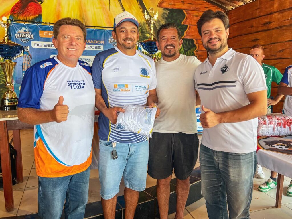 Prefeitura de Serra Branca entrega uniformes e bandeiras às equipes classificadas para as quartas de final do Circuito de Futebol Amador 2025