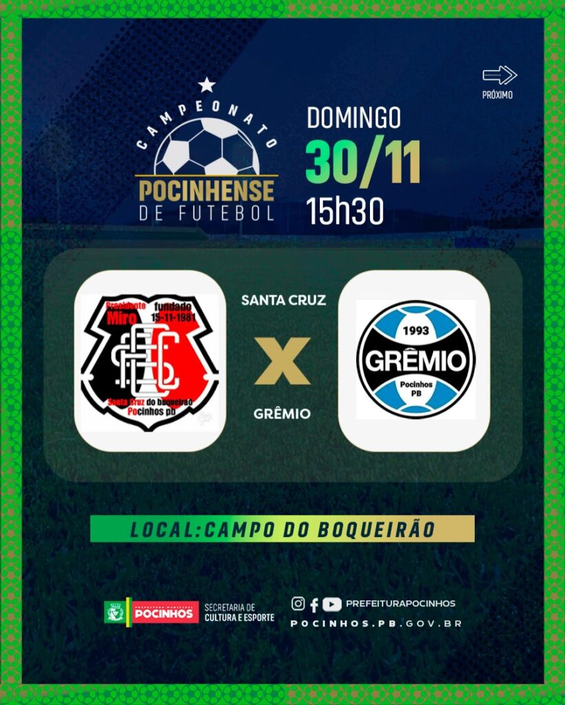 Reconhecido como um dos campeonatos amadores mais tradicionais e disputados da região, o Campeonato Pocinhense de Futebol conta com total apoio da Prefeitura Municipal de Pocinhos, por meio da prefeita Eliane Galdino, e da Secretaria de Cultura e Esportes, comandada pelo secretário Tiago Monteiro.