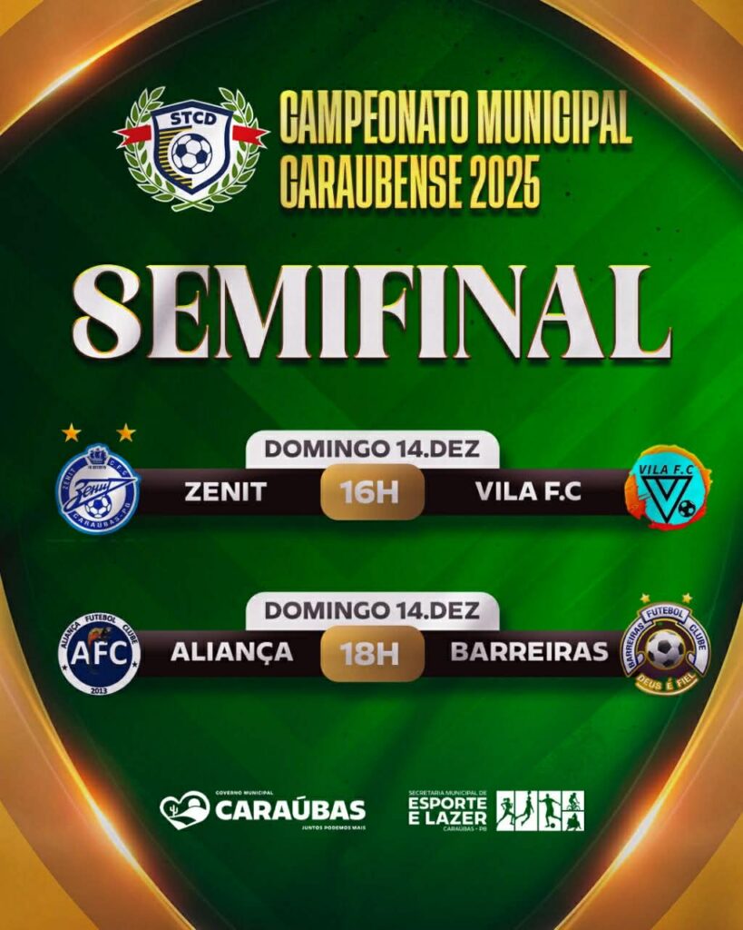 O próximo domingo promete fortes emoções para os amantes do futebol amador. O Estádio Municipal Valderi Neves, em Caraúbas, será palco dos jogos decisivos das semifinais do Campeonato Caraubense de Futebol Amador, competição que vem ganhando cada vez mais prestígio e emoção.