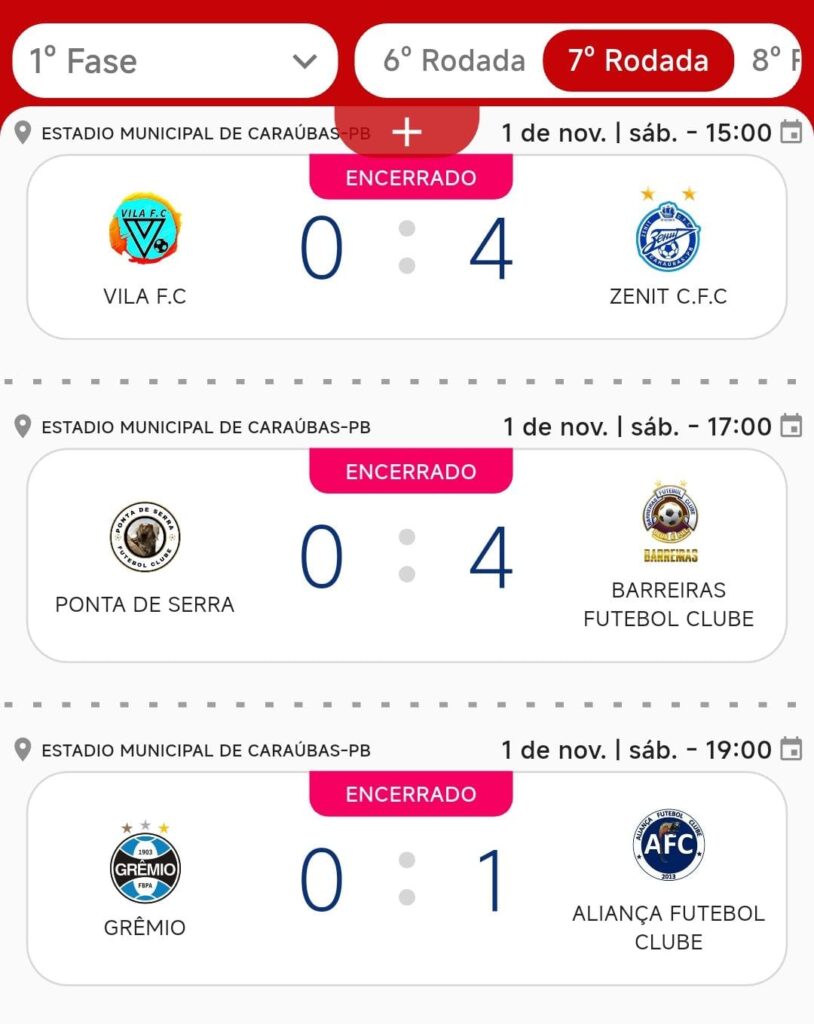 No balanço da rodada, as equipes do Zenit, Barreiras Futebol Clube e Aliança venceram seus jogos e conquistaram mais três importantes pontos na busca pela classificação para a segunda fase. Com os resultados, os times vencedores seguem firmes nas primeiras posições da tabela geral da competição.