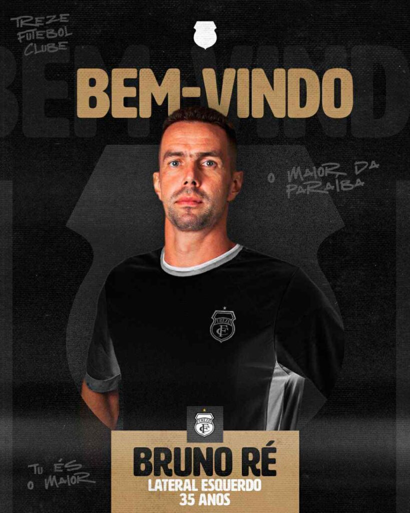 Reconhecido por sua consistência, entrega em campo e capacidade de liderar a retaguarda, Bruno Ré chega ao Treze com o objetivo de contribuir para uma temporada vitoriosa em 2026.